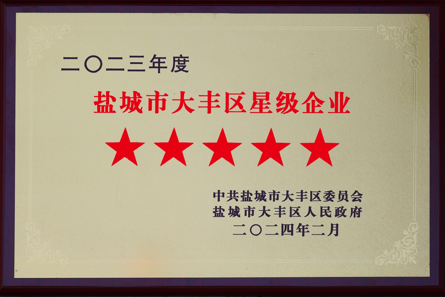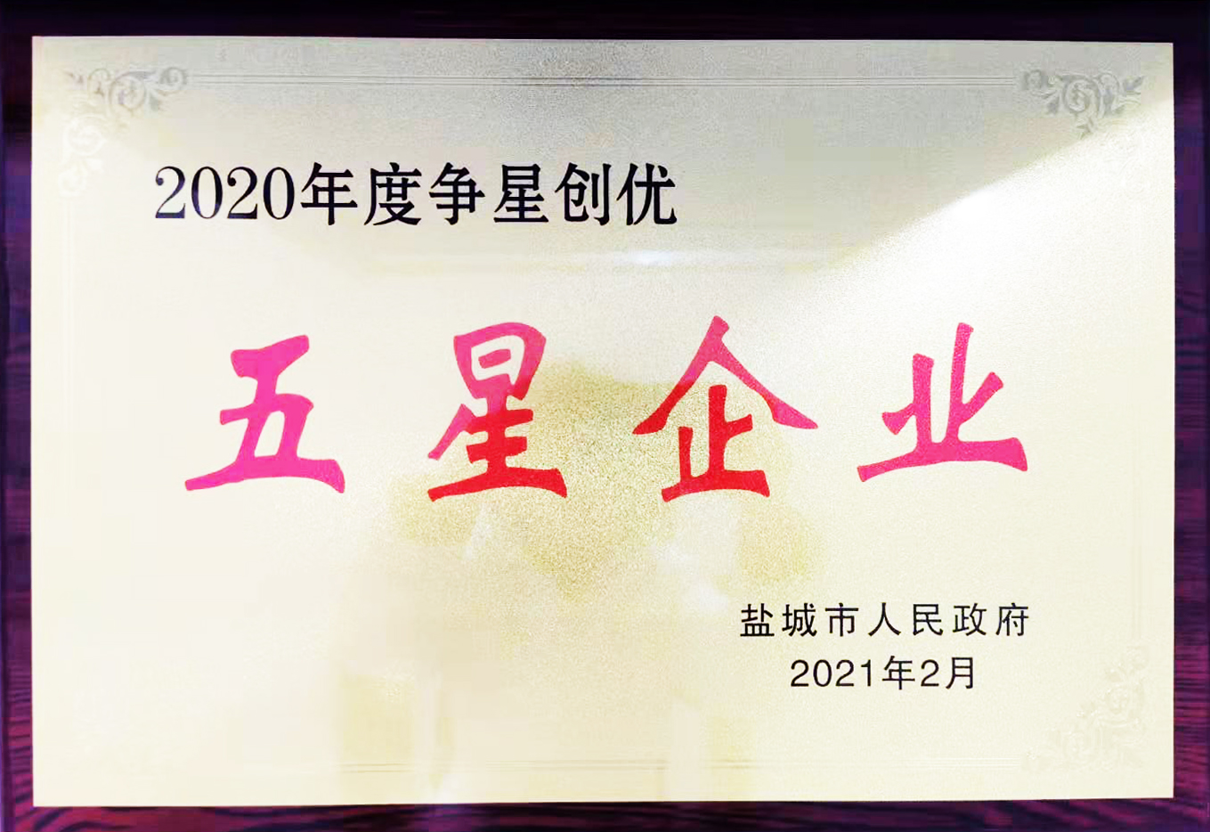 鹽城市爭星創(chuàng)優(yōu)五星企業(yè)獎
