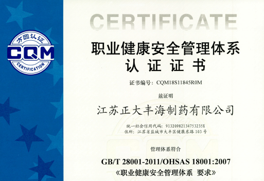 正大豐海喜獲“三個(gè)管理體系”認(rèn)證證書